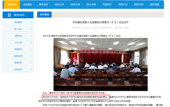 此外,公开消息显示,甘肃康乐县、湖北郧西县也于近日召开了县委常委会,传达学习了中央、国务院关于防范化解地方政府隐性债务风险的意见。其中,湖北郧西县的相关报道中也提到,传达学习了《中共中央 国务院关于防范化解地方政府隐性债务风险的意见》。